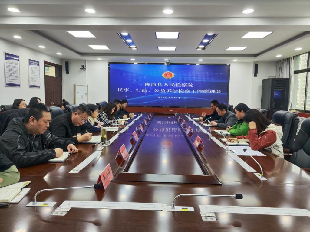 10月16日,陇西县人民检察院召开民事、行政、公益诉讼检察工作推进会,党组成员、副检察长雷耀强主持会议,民事、行政、公益诉讼及办公室全体干警参会。