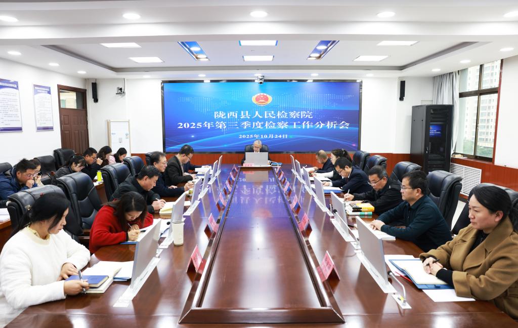 10月24日,陇西县人民检察院召开2025年第三季度检察工作分析会,总结前三季度检察工作,梳理短板弱项,部署第四季度重点工作,推动全年各项目标任务全面完成。院党组书记、检察长后振国主持会议并讲话,院班子成员、检委会委员、各内设机构负责同志及全体员额检察官参加会议。